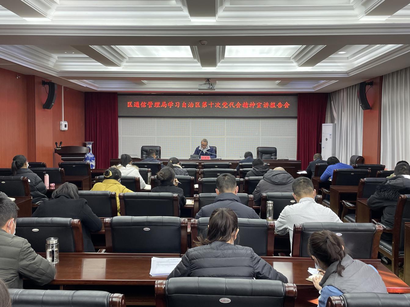 12月13日,自治区通信管理局组织全体干部职工深入学习领会自治区第十次党代会精神,局党组书记、局长闫宏强同志作专题宣讲。