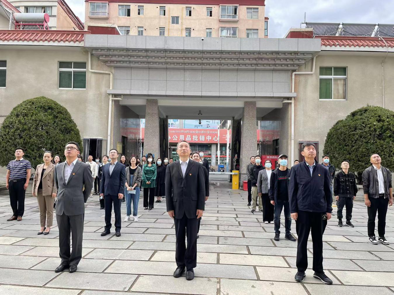 活动在庄严的升国旗唱国歌仪式中拉开序幕,全体干部职工整齐列队,庄严肃立,伴随着激昂雄壮的《义勇军进行曲》,鲜艳的五星红旗冉冉升起,大家齐唱国歌,向国旗行注目礼,共同庆祝中国共产党成立101周年,祝福伟大祖国繁荣昌盛。