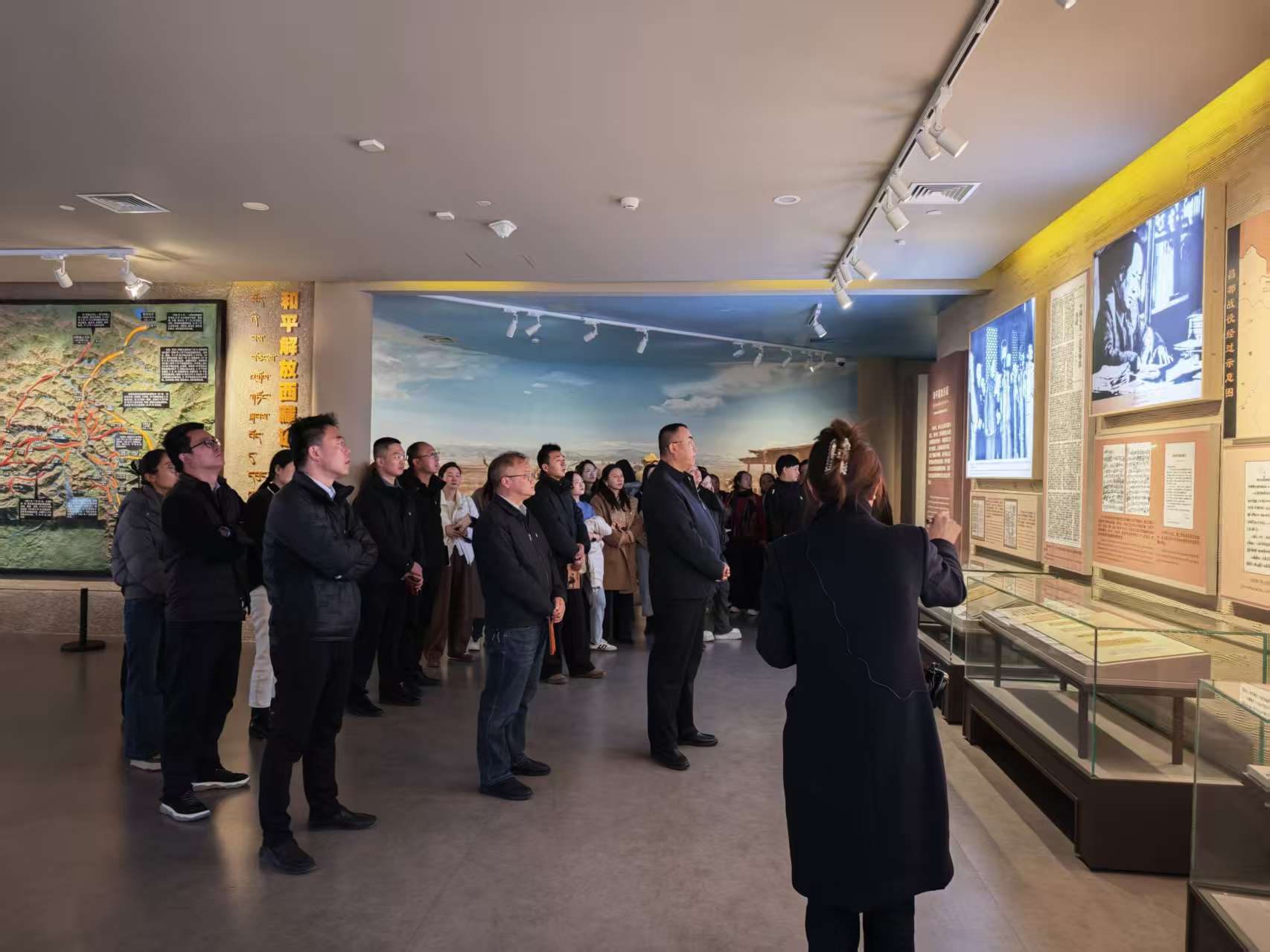 步入展厅,一幅幅历史图片、一件件珍贵文物,真实再现了旧西藏政教合一封建农奴制度下的黑暗与残酷;而“社会主义新西藏”展区呈现的发展成就和各族群众的幸福生活,与昔日形成鲜明对比。大家在一门之隔的沧桑巨变中,深刻体会到没有中国共产党就没有社会主义新西藏,就没有今天西藏各族人民的幸福生活。