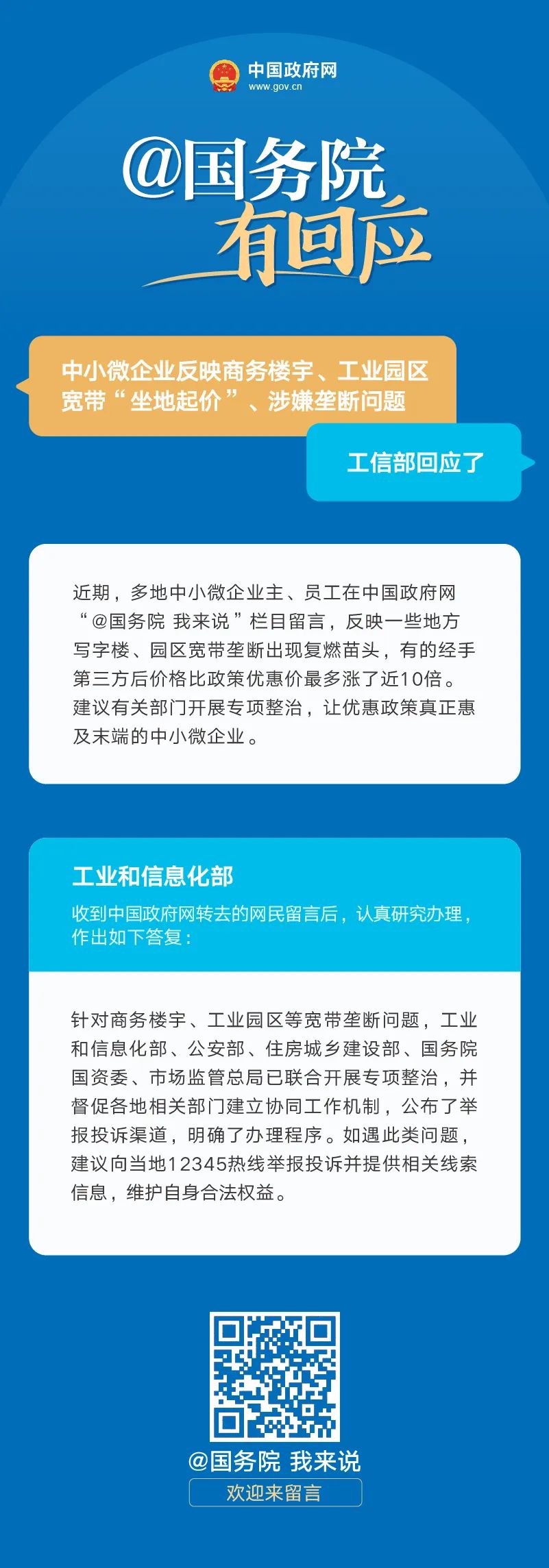 中小微企业反映商务楼宇、工业园区宽带“坐地起价”、涉嫌垄断问题,工业和信息化部回应了